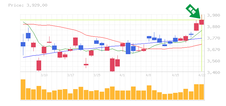 終 値:3929円