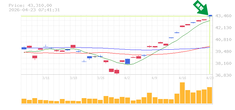 終 値:43310円