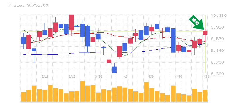 終 値:9755円