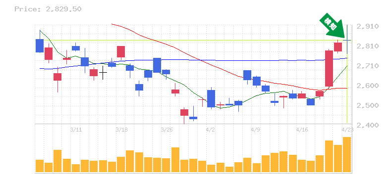 終 値:2829.5円