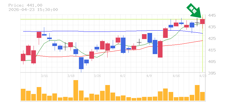 この銘柄は最近、価格の上昇トレンドを示しており、特に注目すべきは直近の数日間にわたる高値更新です。移動平均線も上昇しており、短期的な動きが中長期的なトレンドと一致している様子が伺えます。これは、投資家の信頼感を高める要因となりますね。