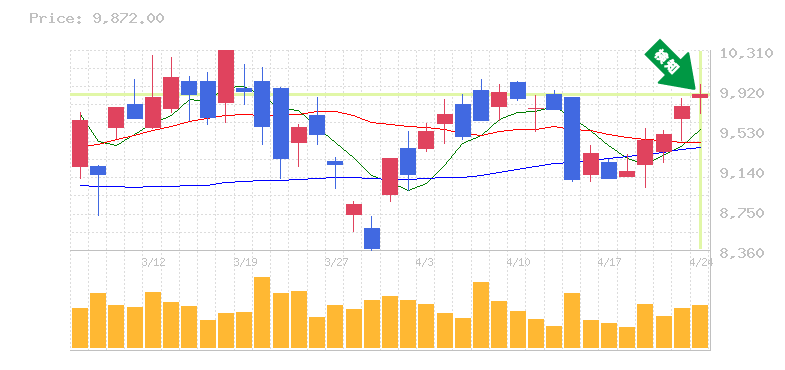 終 値:9872円