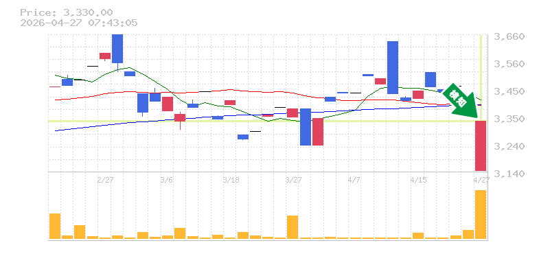 終 値:3330円