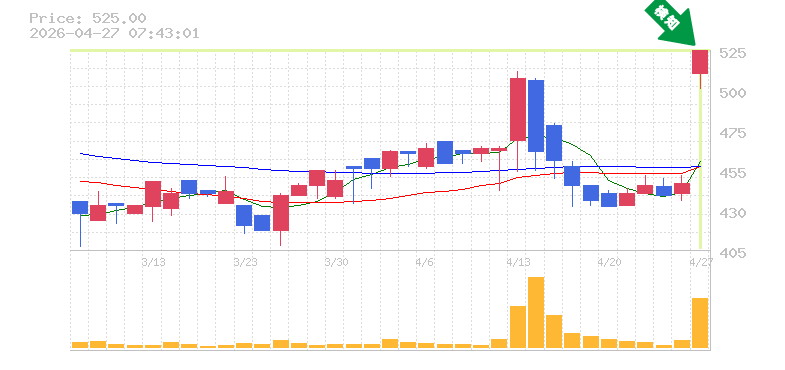 終 値:525円