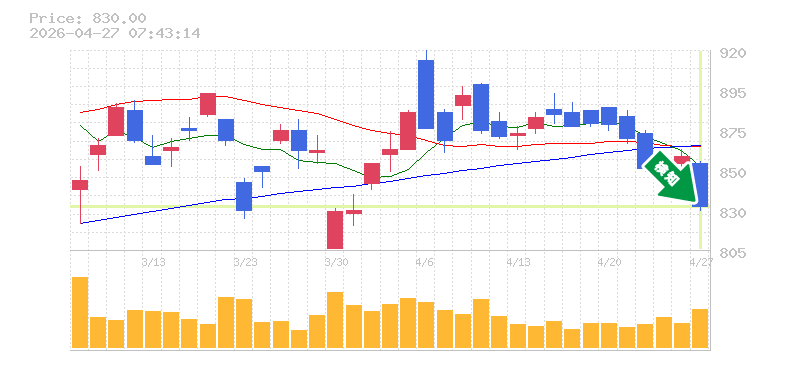終 値:830円
