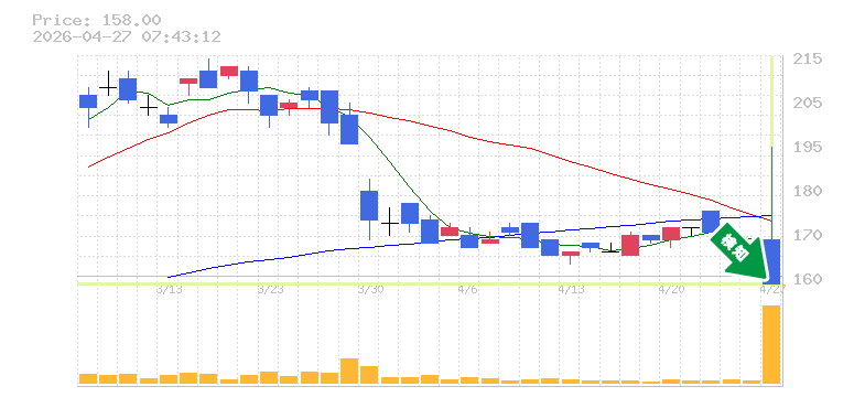 終 値:158円