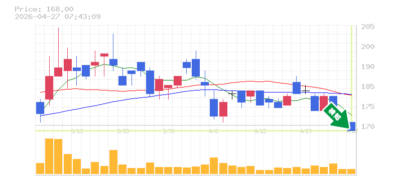 終 値:168円
