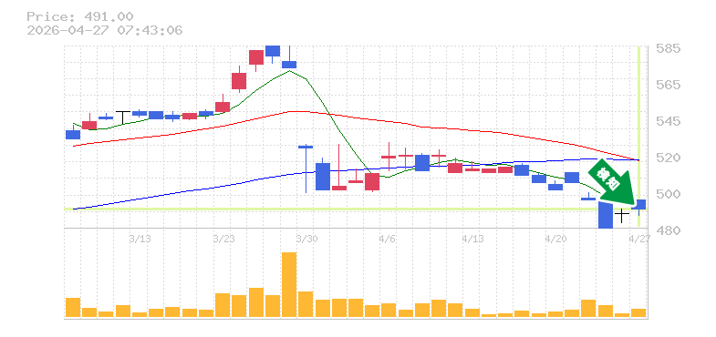 終 値:491円