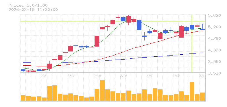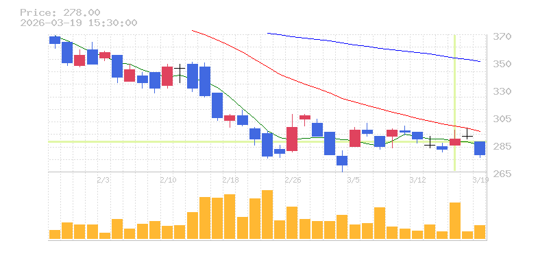 | +0.99% | 3.37倍 前日: 864,600 今日: 2,912,200 | 80 ※検知後推定 上昇出来高 561,000 下降出来高 1,233,800 -672,800 | 陰線 始:5238 高:5512 安:5070 乖:-2.86% vwap:5268.7 stop:5216 - 15:56 AI診断 | |
