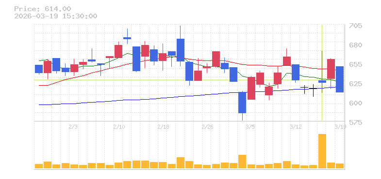 | +1.29% | 12.22倍 前日: 40,400 今日: 493,500 | 65 ※検知後推定 上昇出来高 48,000 下降出来高 152,800 -104,800 | 陰線 始:629 高:669 安:613 乖:-0.32% vwap:634.3 stop:628 - 15:57 AI診断 | |