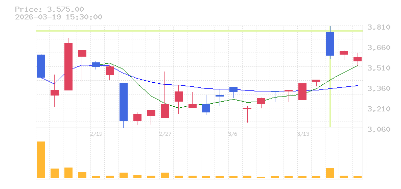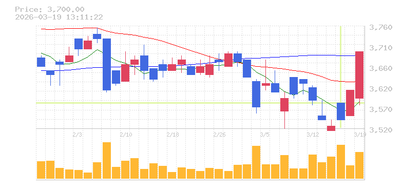 | +0.43% | 1.56倍 前日: 16,900 今日: 26,300 | 50 ※検知後推定 上昇出来高 2,400 下降出来高 6,000 -3,600 | 陰線 始:3580 高:3580 安:3540 乖:-1.12% vwap:3571.6 stop:3535.9 - 15:56 AI診断 | |