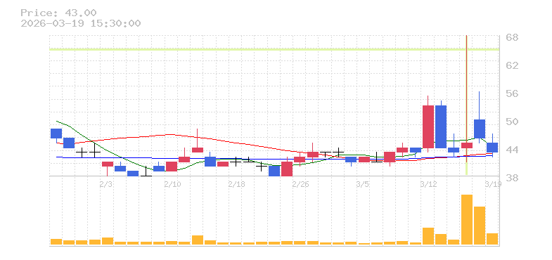 | +18.04% | 6.04倍 前日: 94,100 今日: 568,700 | 95 ※検知後推定 上昇出来高 163,100 下降出来高 261,700 -98,600 | 陽線 始:4300 高:4580 安:4270 乖:6.51% vwap:4517.6 stop:4472.4 ★ 15:56 AI診断 | |