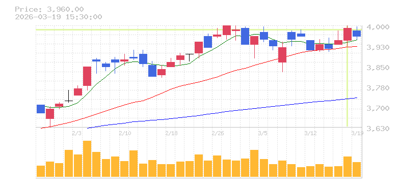 | +1.14% | 2.00倍 前日: 63,700 今日: 127,400 | 80 ※検知後推定 上昇出来高 1,800 下降出来高 13,600 -11,800 | 陽線 始:3945 高:4000 安:3925 乖:1.14% vwap:3969.9 stop:3930.2 - 15:59 AI診断 | |