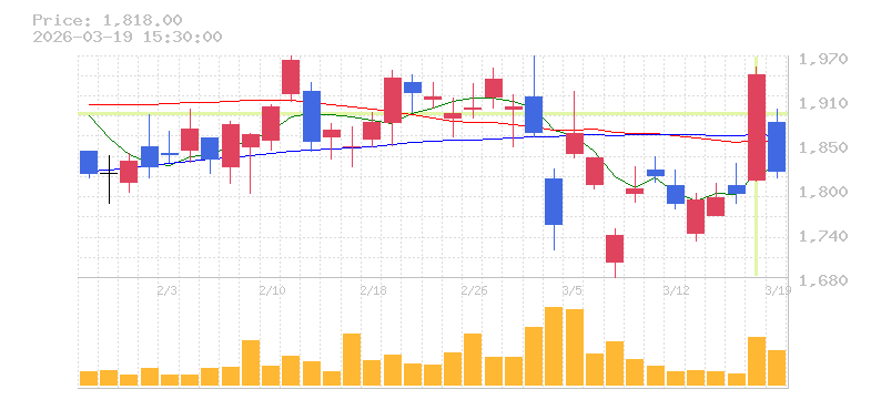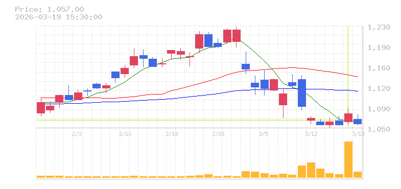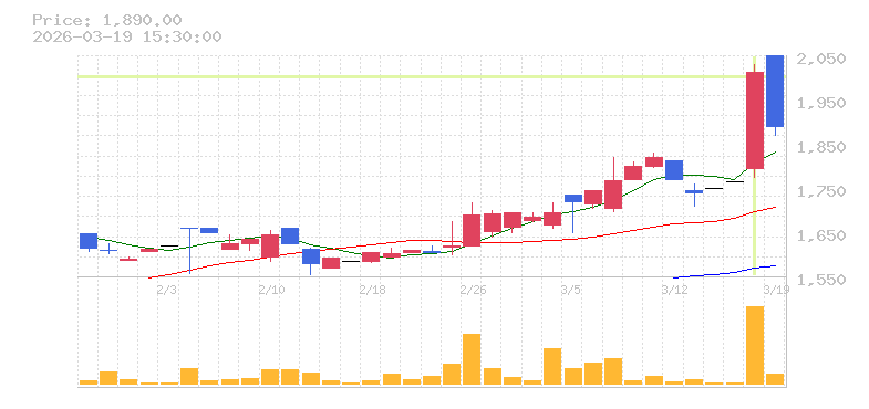 | +1.90% | 11.86倍 前日: 250,000 今日: 2,966,200 | 75 ※検知後推定 上昇出来高 747,000 下降出来高 517,500 +229,500 | 陽線 始:1060 高:1084 安:1057 乖:1.42% vwap:1065.3 stop:1054.6 - 15:59 AI診断 | |