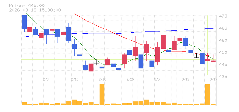 | +0.68% | 15.98倍 前日: 12,900 今日: 206,200 | 50 ※検知後推定 上昇出来高 0 下降出来高 0 0 | 陽線 始:445 高:450 安:445 乖:0.22% vwap:446.1 stop:441.6 - 15:59 AI診断 | |