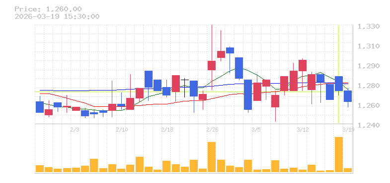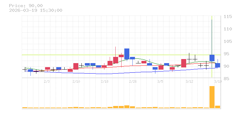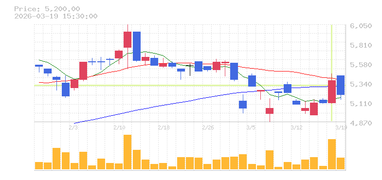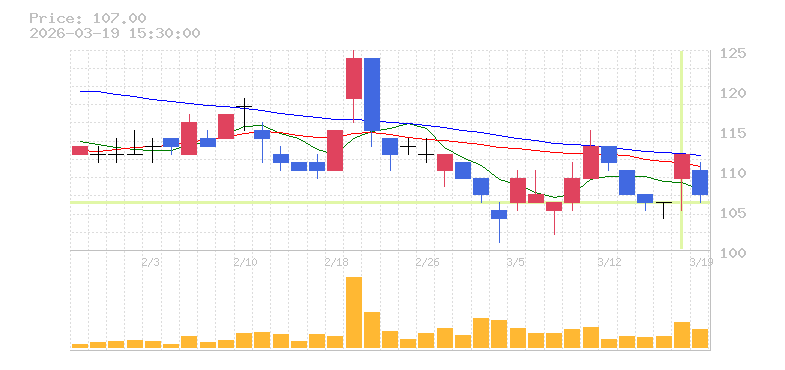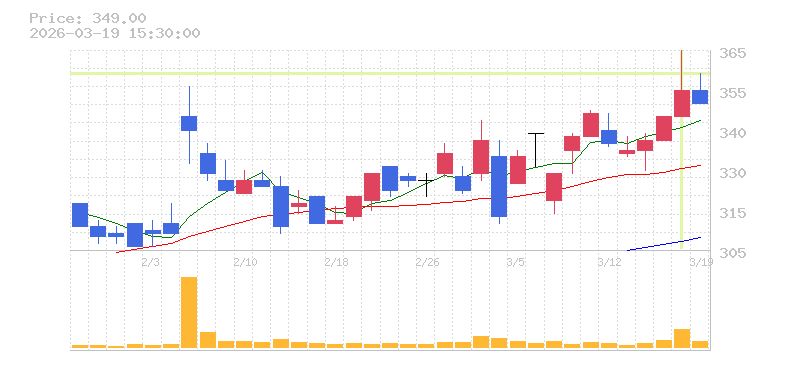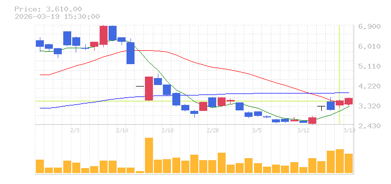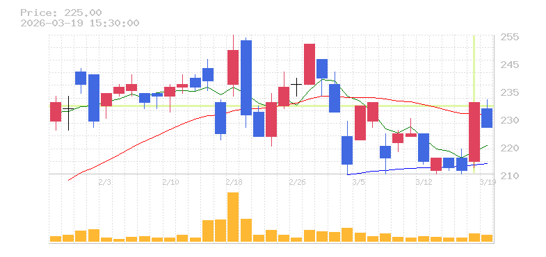 | +9.95% | 2.51倍 前日: 116,000 今日: 291,100 | 65 ※検知後推定 上昇出来高 0 下降出来高 0 0 | 陽線 始:214 高:233 安:212 乖:8.41% vwap:224.8 stop:222.6 - 15:44 AI診断 | |