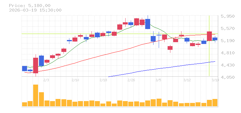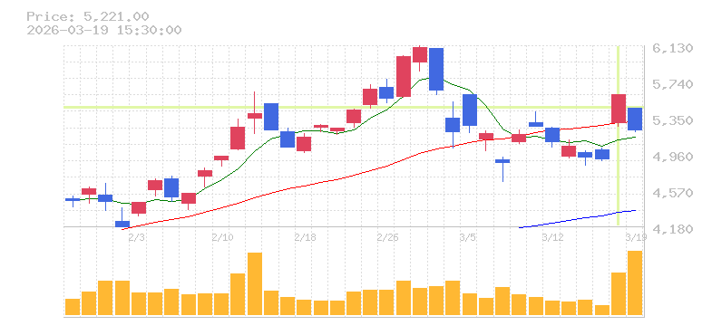 | +14.28% | 4.76倍 前日: 815,100 今日: 3,875,900 | 95 ※検知後推定 上昇出来高 1,144,400 下降出来高 1,272,500 -128,100 | 陽線 始:5299 高:5603 安:5256 乖:5.74% vwap:5464.6 stop:5410 - 15:59 AI診断 | |