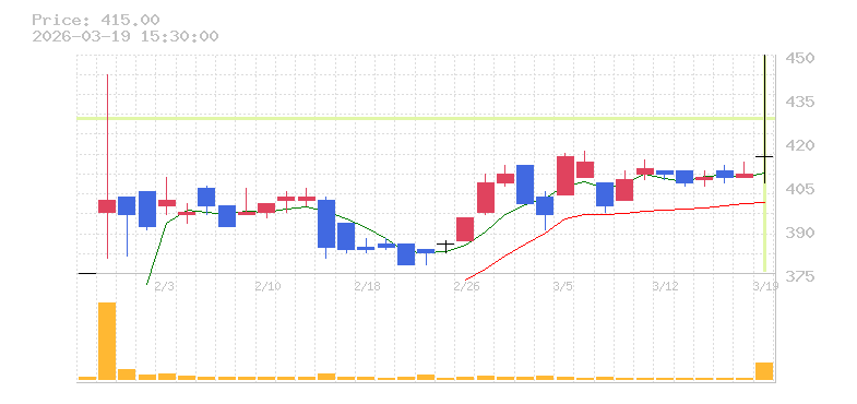 | +1.47% | 34.69倍 前日: 13,600 今日: 471,800 | 70 ※検知後推定 上昇出来高 35,000 下降出来高 207,200 -172,200 | 陽線 始:415 高:452 安:406 乖:0% vwap:424.6 stop:420.4 - 15:57 AI診断 | |