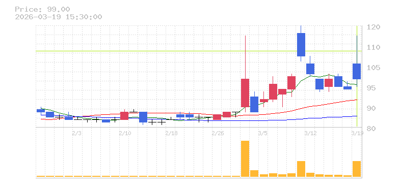 | +4.21% | 20.22倍 前日: 1,021,600 今日: 20,657,400 | 80 ※検知後推定 上昇出来高 5,630,200 下降出来高 10,387,500 -4,757,300 | 陰線 始:105 高:116 安:96 乖:-5.71% vwap:107.5 stop:106.4 - 15:57 AI診断 | |
