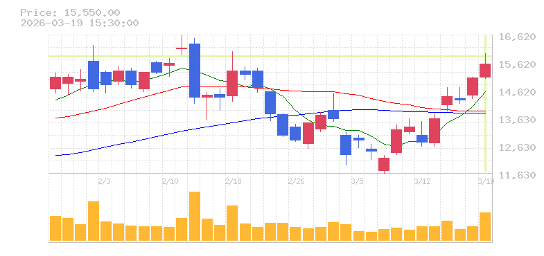 | +3.62% | 1.91倍 前日: 2,026,400 今日: 3,866,500 | 80 ※検知後推定 上昇出来高 589,800 下降出来高 944,300 -354,500 | 陽線 始:15080 高:15925 安:15040 乖:3.55% vwap:15498.8 stop:15343.8 - 15:35 AI診断 | |