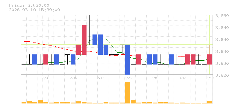 | +0.14% | 22.84倍 前日: 4,300 今日: 98,200 | 65 ※検知後推定 上昇出来高 0 下降出来高 16,800 -16,800 | 陽線 始:3625 高:3635 安:3625 乖:0.14% vwap:3630 stop:3593.7 - 15:57 AI診断 | |