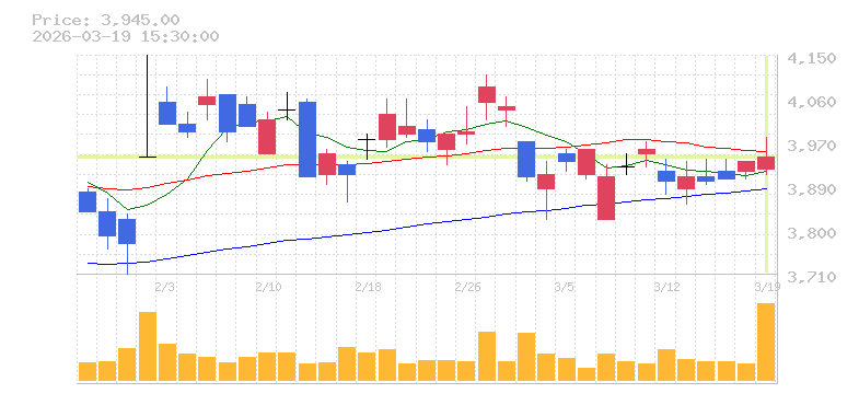 | +0.25% | 4.88倍 前日: 54,100 今日: 264,100 | 75 ※検知後推定 上昇出来高 0 下降出来高 0 0 | 陽線 始:3920 高:3985 安:3910 乖:0.64% vwap:3947.9 stop:3908.4 - 15:57 AI診断 | |