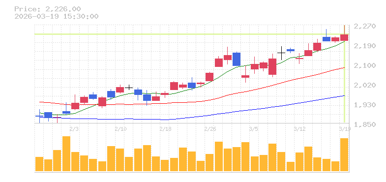 | +0.50% | 3.47倍 前日: 29,400 今日: 101,900 | 70 ※検知後推定 上昇出来高 7,600 下降出来高 15,200 -7,600 | 陽線 始:2201 高:2266 安:2201 乖:1.14% vwap:2238.8 stop:2216.4 - 15:46 AI診断 | |